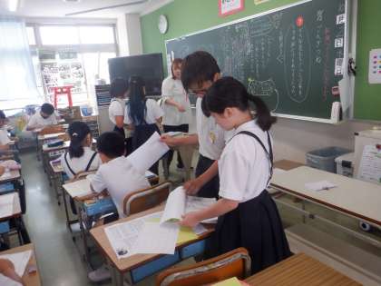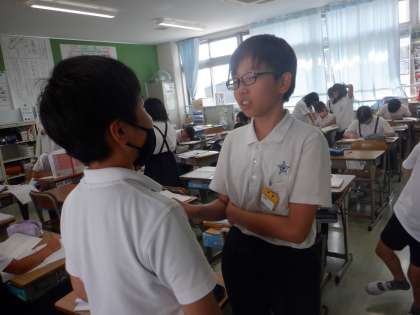 必要に応じて、あちこちで仲間の考えを聞いているところが見られました。各自の読みをさらに深めていきましょう。