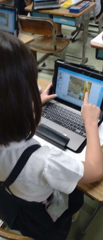 こちらのクラスは同じくタブレットを使って報告文を作っていきます