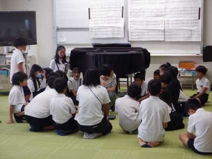 録音した自分たちの歌声を聞いているところです。手ごたえがあったようです。本番まであと1か月あまりです。いい歌にしていきましょう。