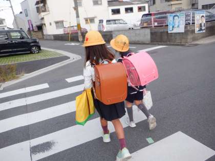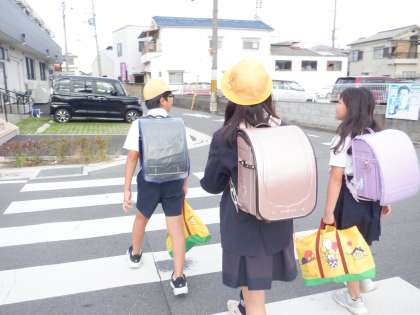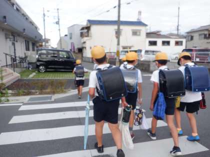 今朝の登校の様子です。くもりがちですが、雨は降っていません。