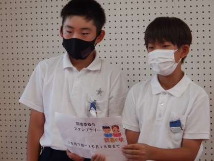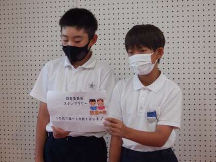 図書委員会からのお知らせです。スタンプラリーに参加すると、委員会から景品がもらえるとのことでした。