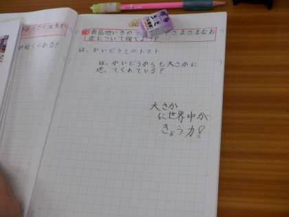 遠い北海道からも大阪に野菜が運ばれていることに驚いていました。