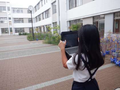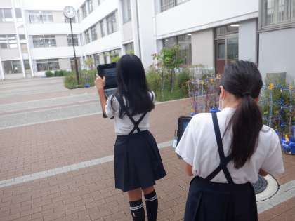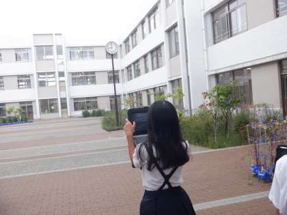 はとぶえに出す校舎の絵を描くために、写真を撮っているところです。