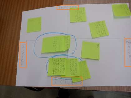 この人たちは、自分たちのアイデアを、横軸に自分たちでするか協力を求めるか、縦軸に時間がかかるかすぐできるか をとり、整理しました。
