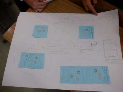 この人たちは、活動の内容でカテゴリーをつくり、メリットとデメリットを出し合ってメモしています。