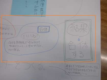 5年1組 国語 6 公開日 2024/10/22 更新日 2024/10/22 5年 その結果、どれか1つを行うというのではなく、いくつかのアイデアを一連の取組として行うように「合体」させることを考えました。