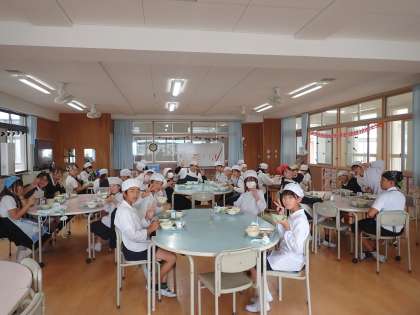 今日はランチルームで6年1組が給食を食べました。担任の先生や友達と楽しく「好きな給食は何?」など会話しながら過ごしました。ごはんもおかずも空っぽになるまで食べました♪