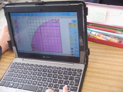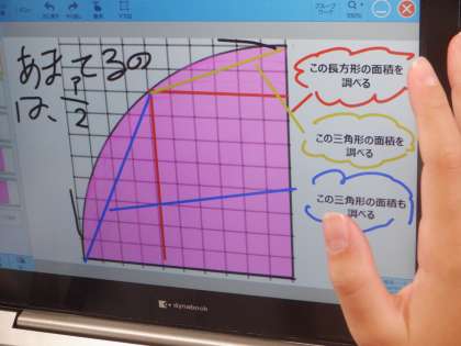 こちらのクラスでも、PCを使って半径10cmの円の面積を考えています。