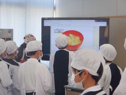 5年家庭科の学習です。ご飯とみそ汁をつくる調理実習です。みそは総合の学習で自分たちが作ったものを使います。