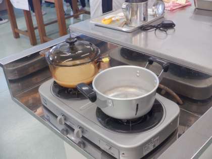 コンロに点火し、いよいよ実習開始です。