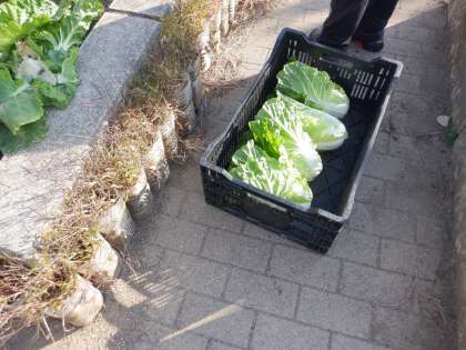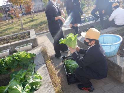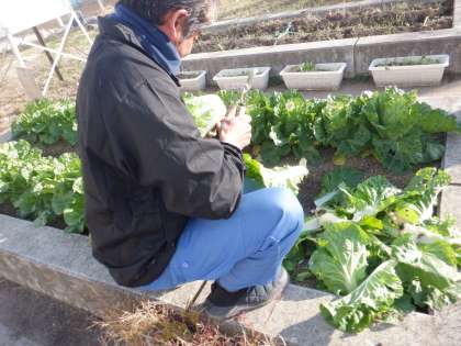 レタ菜(レタスと白菜のハイブリッド?)も収穫します。よく育っているとのことでした。