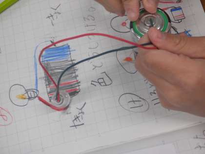 導線をおなじ極どうしにつないでも、豆電球はつきません。