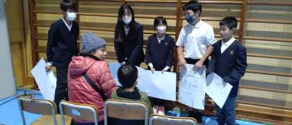 体育館で歴史グループが発表しました