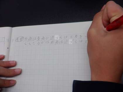 この結果から、どんなことが言えるのかを考えました。おもりの位置(作用点)、押す位置(力点)から支点までの距離が関係しているようです。さらに学習を深めてください。