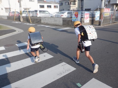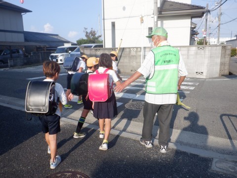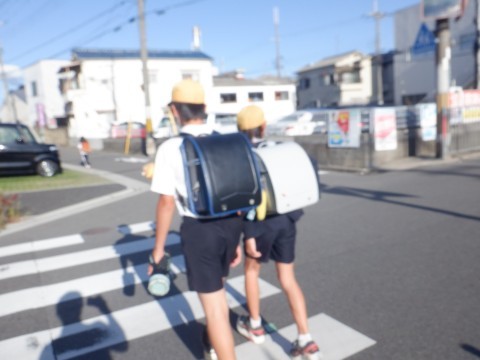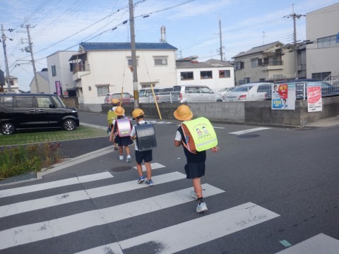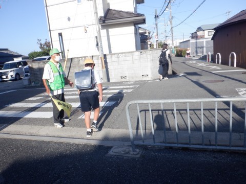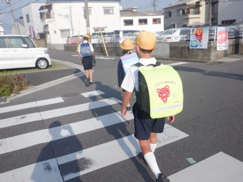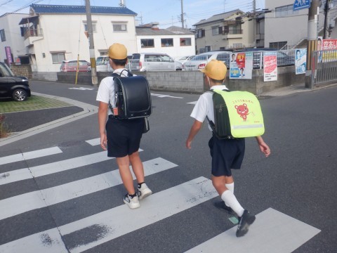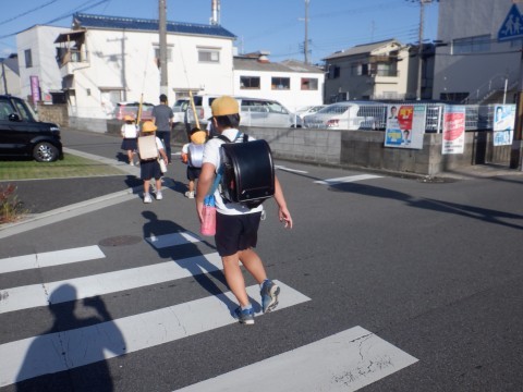 今朝の登校の様子です。日差しはありますが,今日は涼しさを感じる朝です。