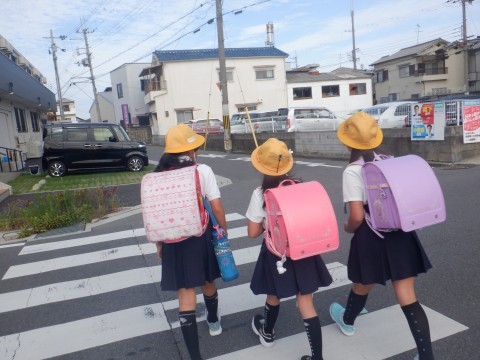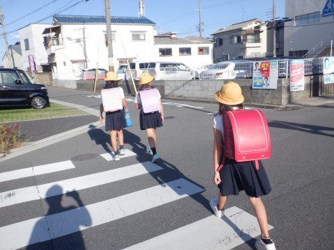 今朝の登校の様子です。秋らしくさわやかな朝です。