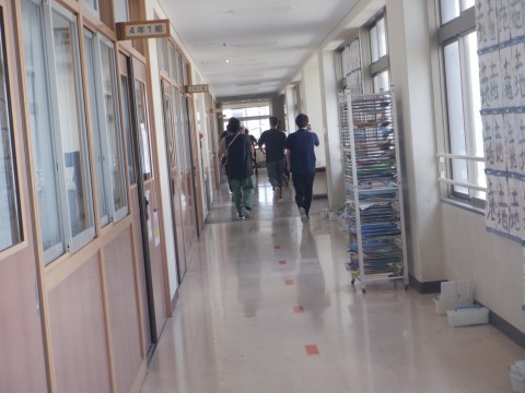 3時間めに不審者対応訓練を行いました。不審者が校舎内に入ったという連絡を受けて,それぞれの役割に従って動き始めました。