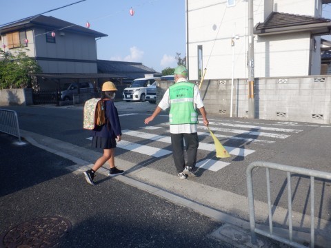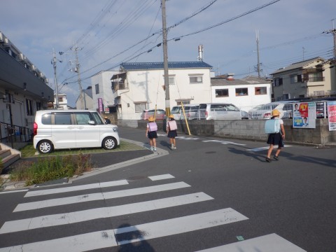 今朝の登校の様子です。風がないので,日が照ると暑さを感じます。