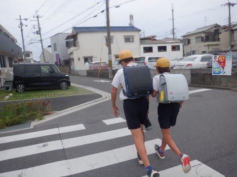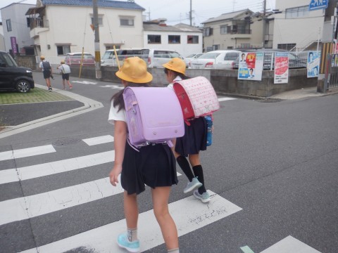 今朝の登校の様子です。風がないので,日が照ると暑さを感じます。