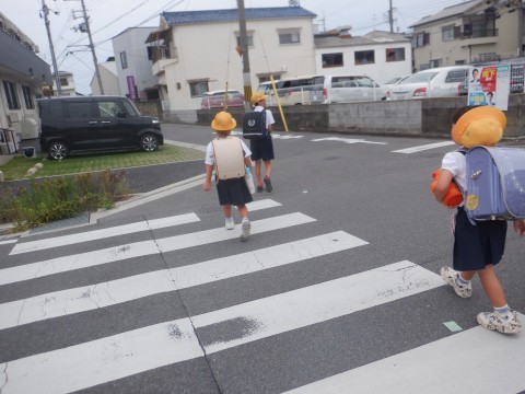 今朝の登校の様子です。日差しはありますが,今日は涼しさを感じる朝です。