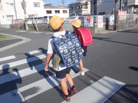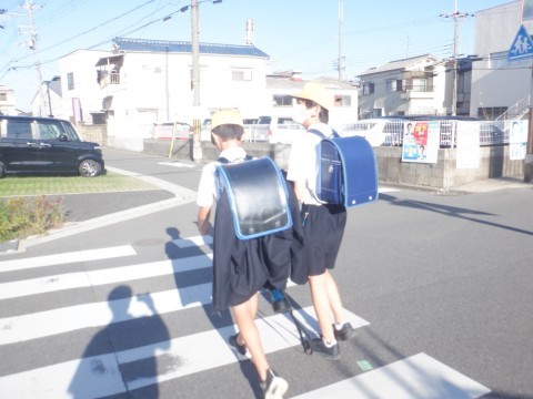 今朝の登校の様子です。きれいに晴れていますが,昨日の暑さが残っているようで,あまり涼しさを感じません。