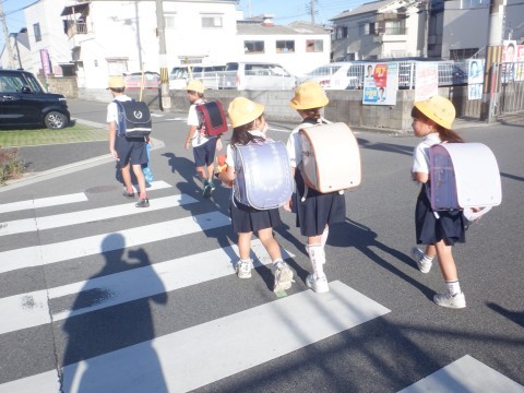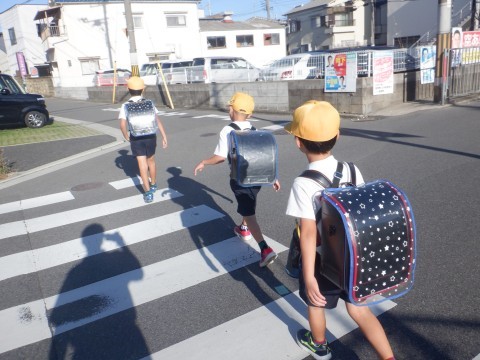 今朝の登校の様子です。久しぶりに秋晴れの朝になりました。