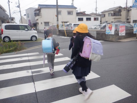 今朝の登校の様子です。季節が一気に進んだようで,少し肌寒くさえ感じます。