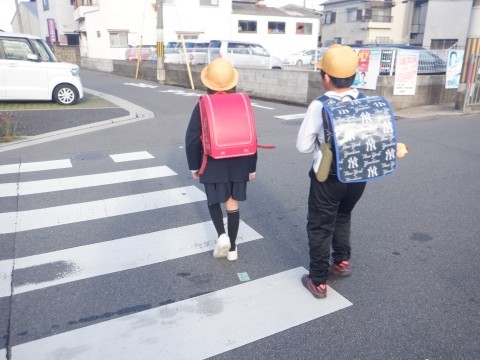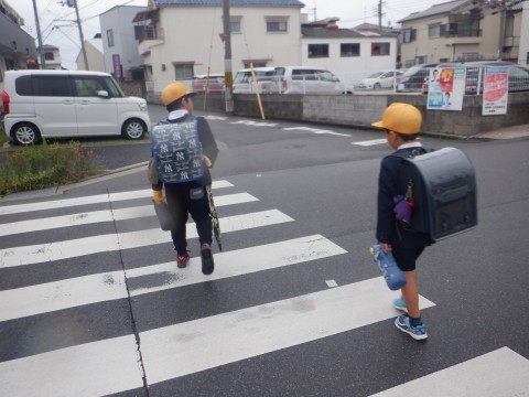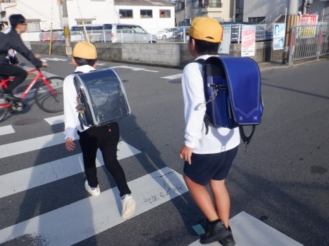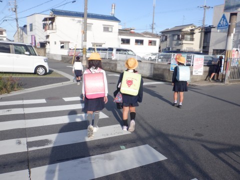 今朝の登校の様子です。秋らしい晴れの朝です。