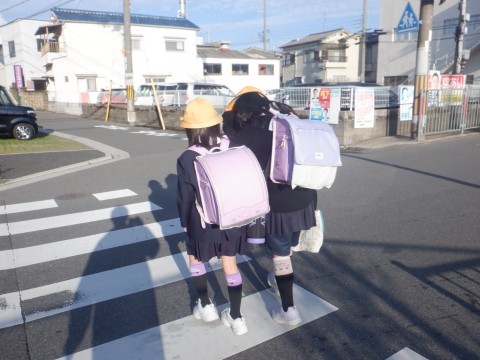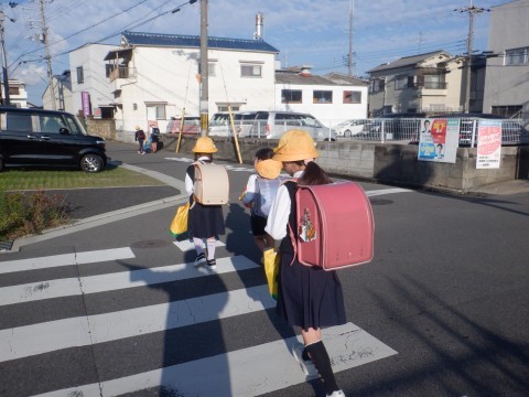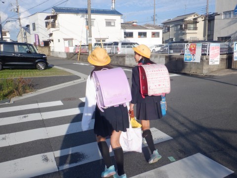 今朝の登校の様子です。昨日までの雨はあがり,晴れ間が出てきました。