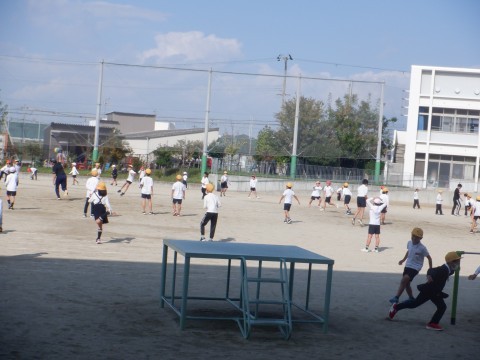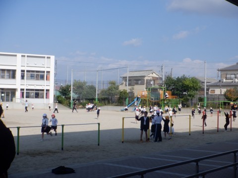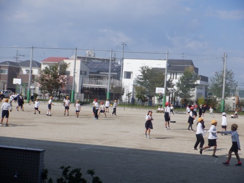 涼しくなってきたので,外で運動するのにいい気候になってきました。中休みの様子ですが,たくさんの人が外で遊んでいます。