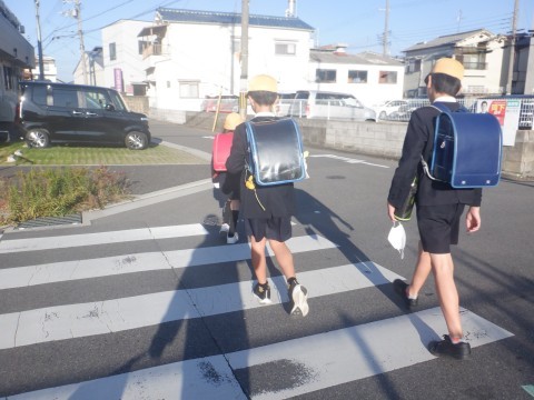 今朝の登校の様子です。秋空が広がっていますが,最低気温は10度を下回っていて,少し寒いですね。