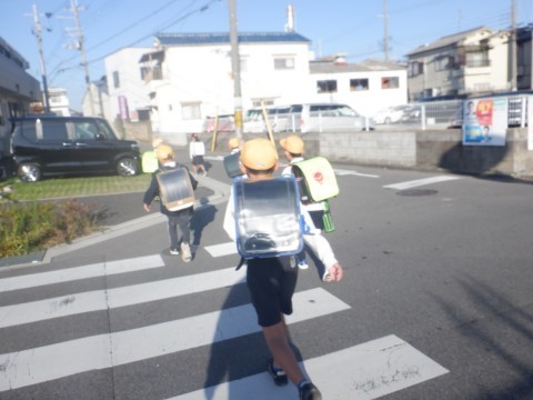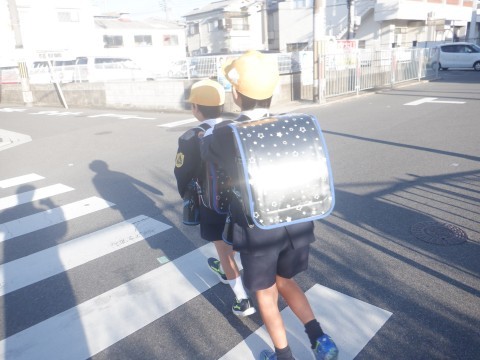 今朝の登校の様子です。風はありませんが,ひんやりとした秋の朝です。