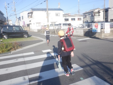 今朝の登校の様子です。今日は気温が7度代まで下がりました。涼しいを通り越して,寒く感じます。