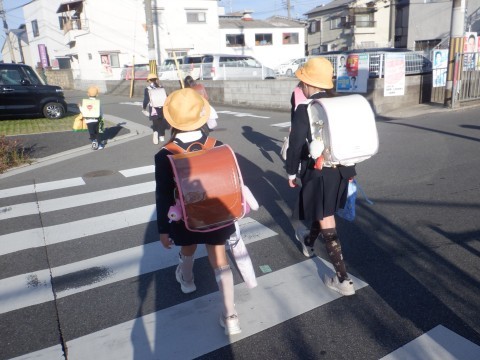 今朝の登校の様子です。最低気温が7度台の冷え込みですが,昨日ほどの風はありません。