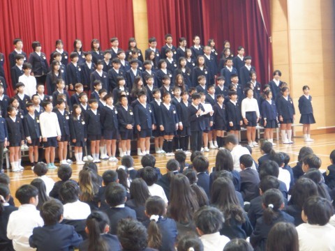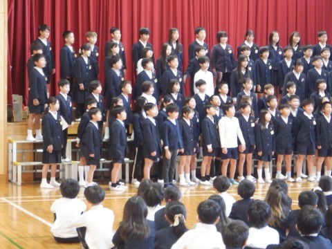 6日に連合音楽会に出場する5年生のために,壮行会を開きました。司会は6年生が務めてくれました。