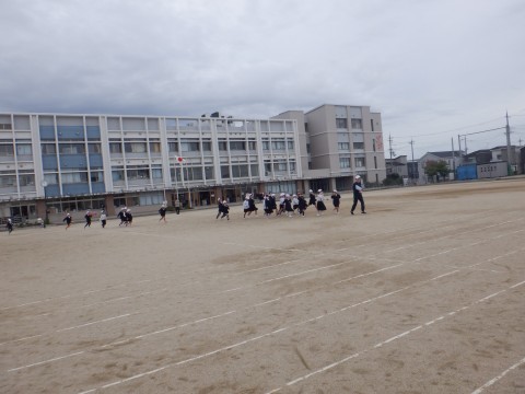 今朝の登校の様子です。冷え込みはありませんが,曇っていて風があるので,少し寒く感じます。