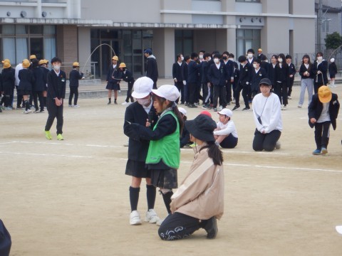 昼休みに行われた2・4・6年各1組による長なわ大会の様子です。体育委員会の人たちが司会をして,クラスの目標を発表するところから始めました。