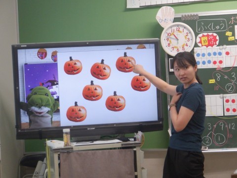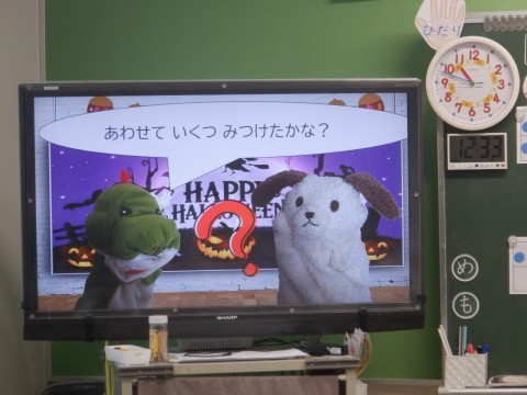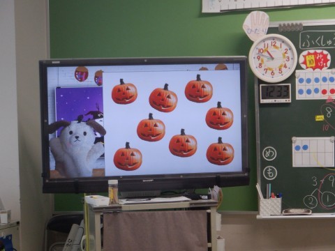 1年算数の学習です。テレビを使って問題を提示しています。