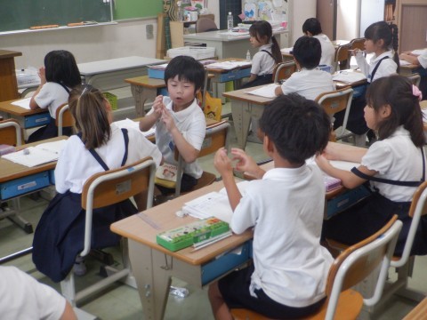 どのように計算したのか,キューブの動きと合わせて黒板でみんなと共有しました。