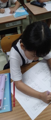 どのように計算したのか,キューブの動きと合わせて黒板でみんなと共有しました。