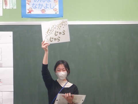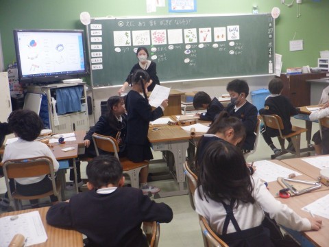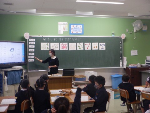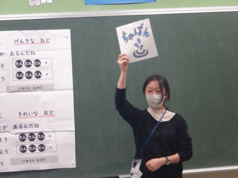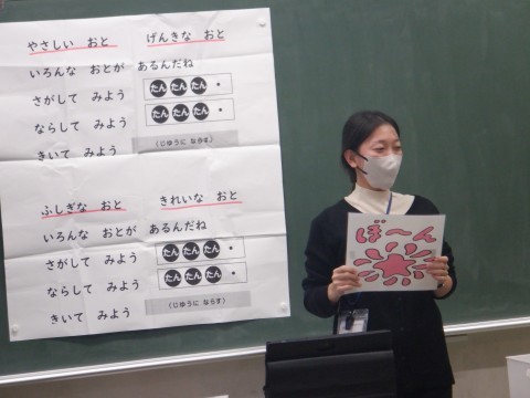 工夫して創り出した音をみんなに紹介しているところです。ねらいをしっかり意識して学習が進んでいました。