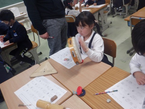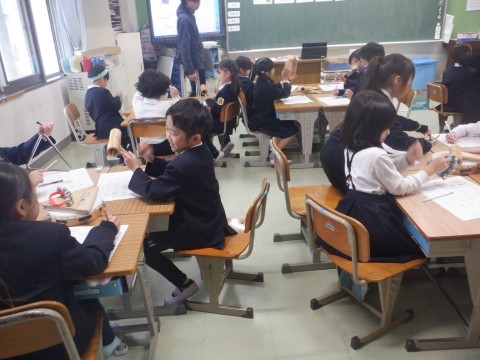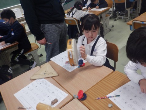 1年3組さんは図工の時間!風で動くおもちゃを作ります