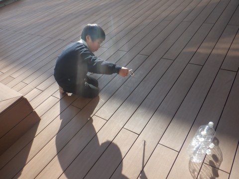 2年生活の学習です。紙コップが飛び上がっています。