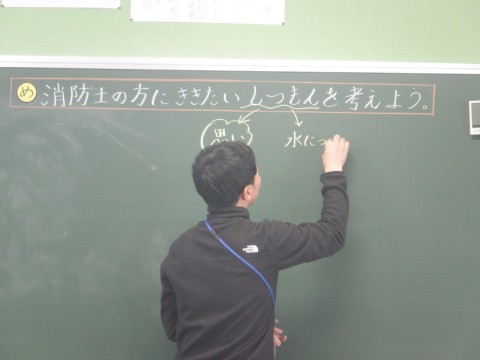 どんなことを質問したいか,何人かに聞いているところです。幼稚園などで消防士の方のお話を聞いている人が半分近くいることに驚きました。