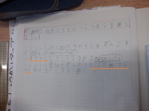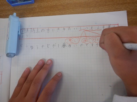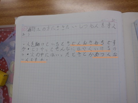 3年社会の学習です。消防の仕事について,消防署の方に質問したいことを考えています。