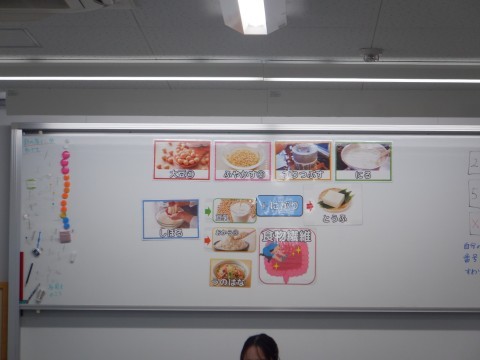 固まるのを待つ間,豆腐を使った食材についてのクイズをしました。これは高野豆腐ですが,どうやって作るのでしょうか。
