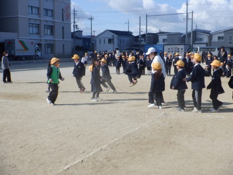3分間のトライアルが始まりました。1年生の様子です。なわをうまく回しています。
