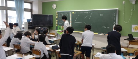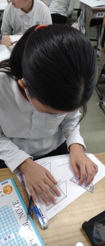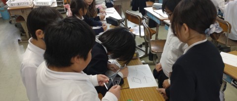 算数の時間に台形や平行四辺形の作図の仕方について考えます