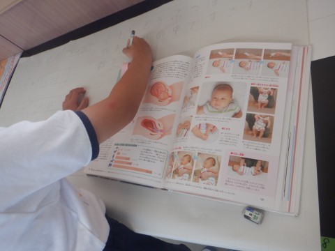 この人もヒトの赤ちゃんの成長を調べています。本を使って調べる人が多いようです。