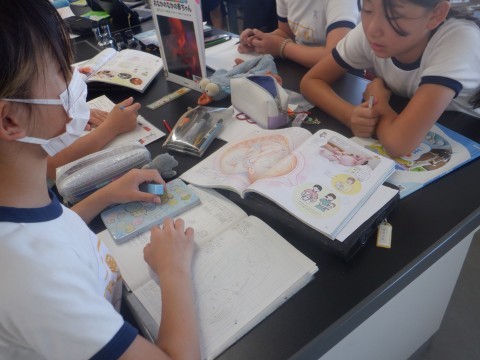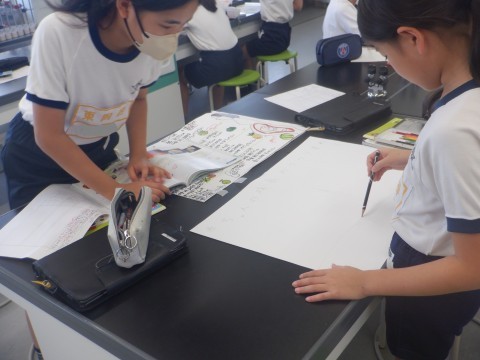 調べる内容だけではなく,調べたことのまとめ方についても,アドバイスし合って学習を進めています。